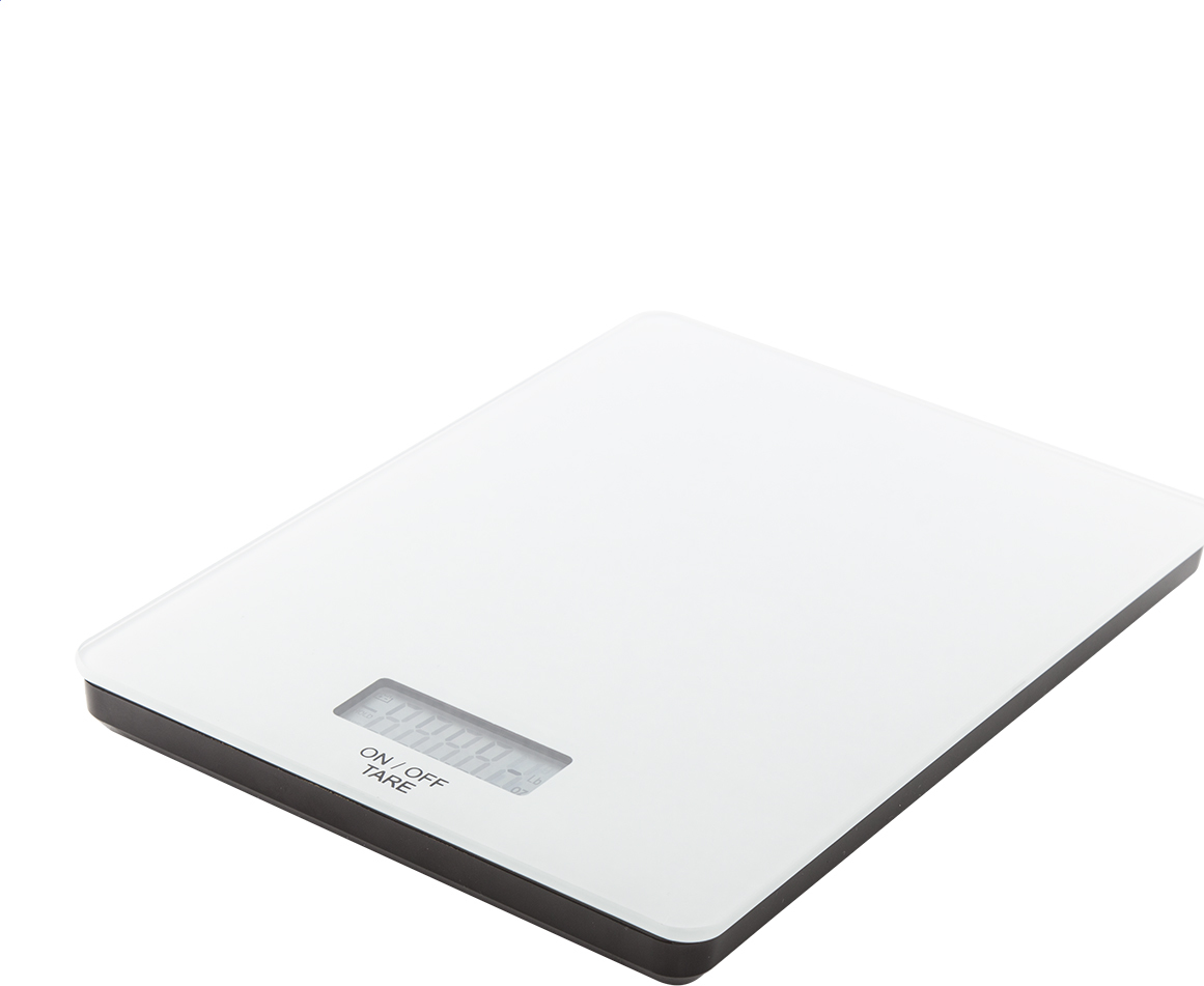 Digitální kuchyňská váha s povrchem z tvrzeného skla. Kapacita: 5kg, stupnice 1g, měrné jednotky g/oz. Dodáváno bez 2 AAA baterií.
