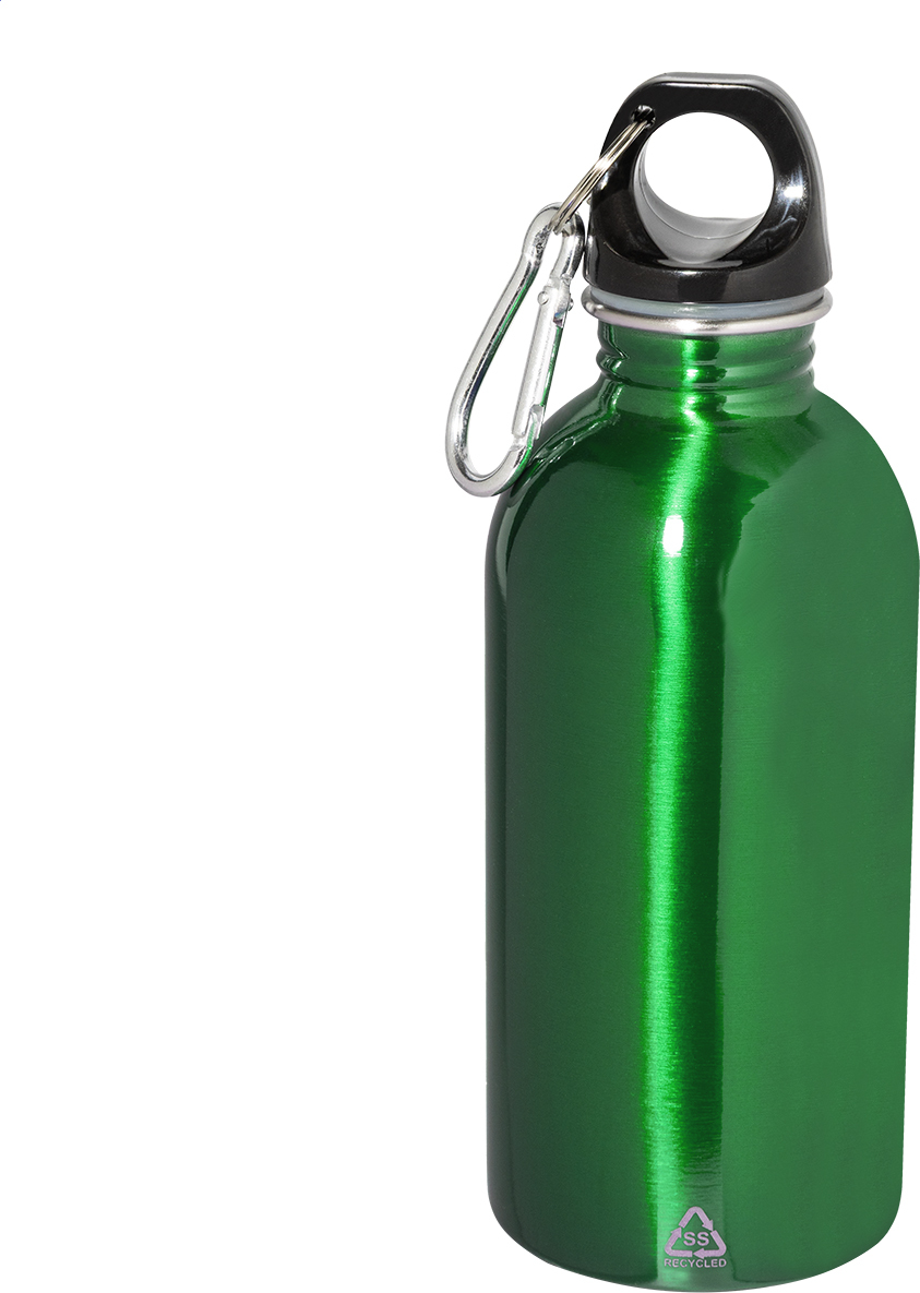 Láhev z recyklované nerezové oceli s hliníkovou karabinou, 400 ml.