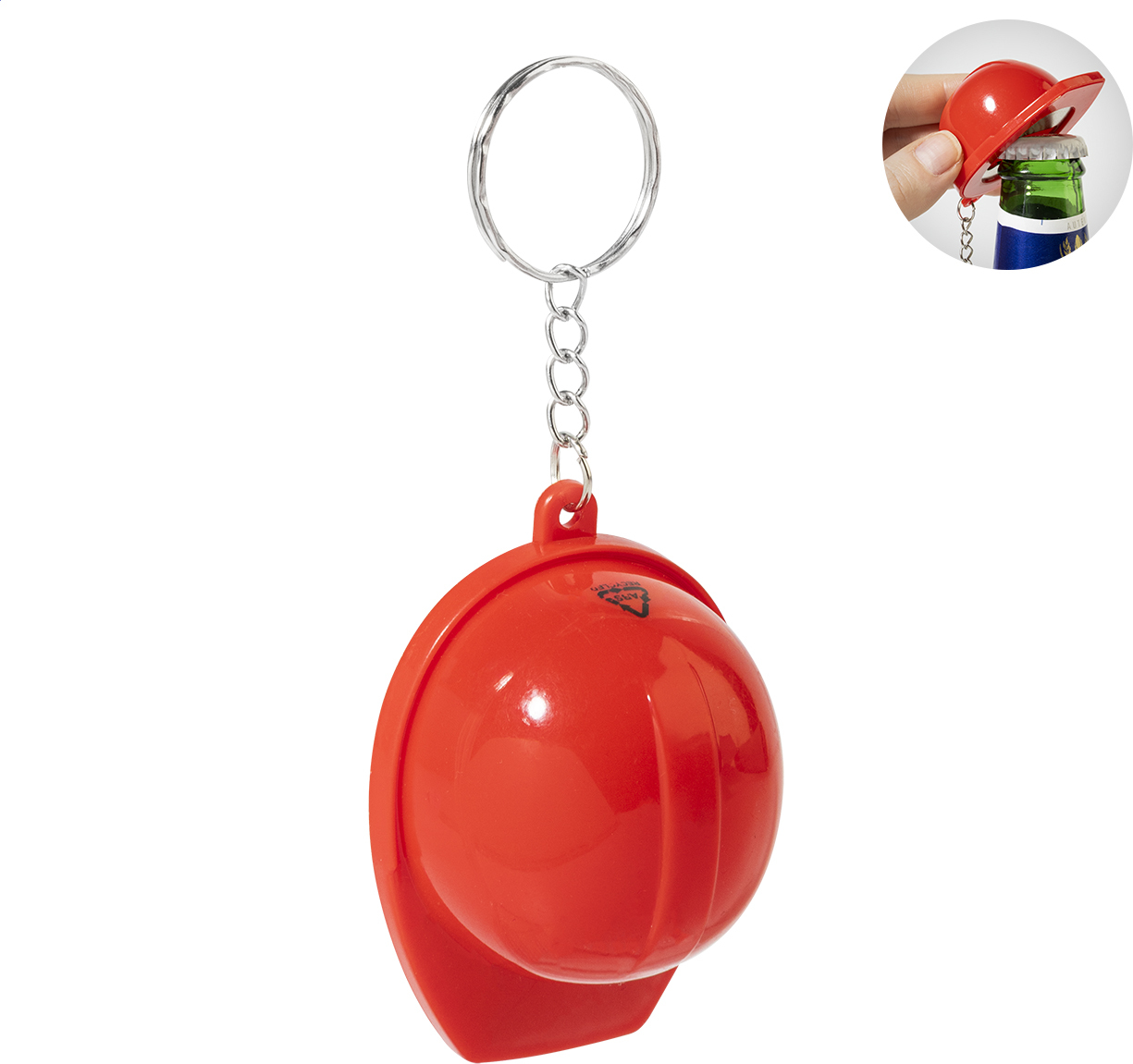 Přívěsek na klíče ve tvaru bezpečnostní přilby z recyklovaného ABS materiálu s otvírákem na lahve.