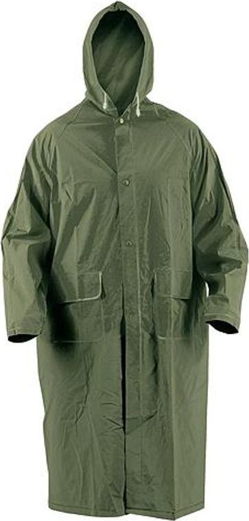 Zelená pláštěnka s kapucí ze 100% polyesteru s trochou PVC. Do předních kapes nenateče voda díky krytí legiemi. S vnitřní manžetou na gumu a ventilací na zádech a pod pažemi. Zakazuje se bělit, sušit v bubnové sušičce, žehlit, chemicky čistit. Norma EN ISO 13688.