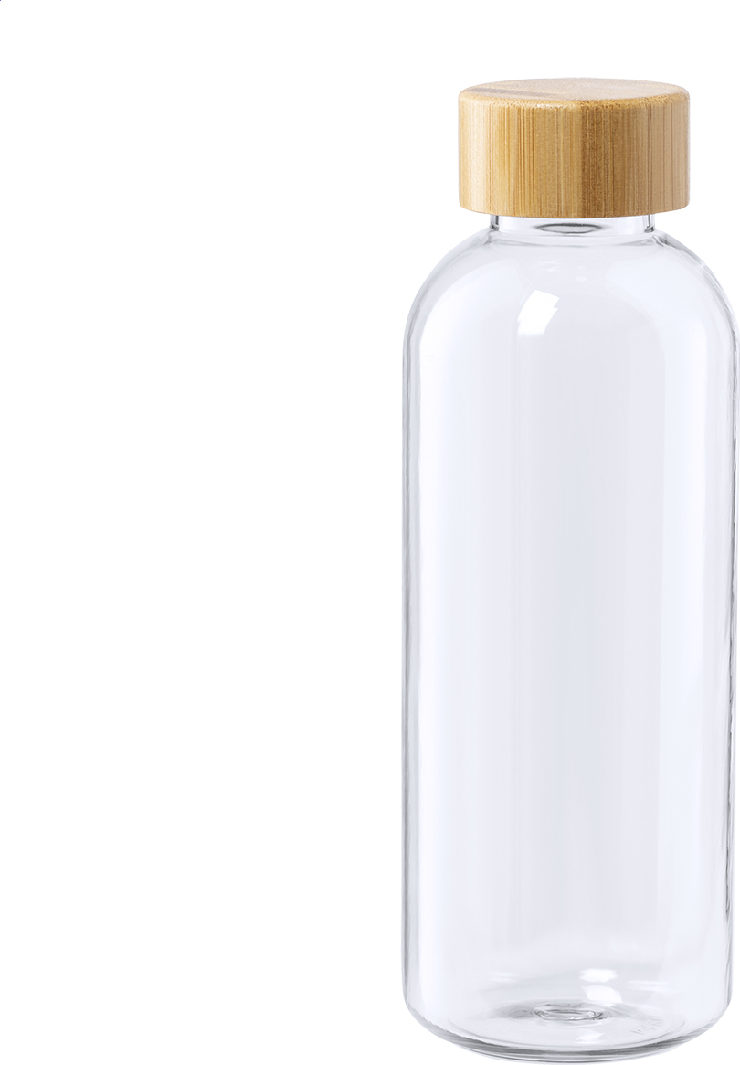 RPET láhev s bambusovým uzávěrem, 600 ml. Bez BPA. Nevhodné pro sycené nápoje.