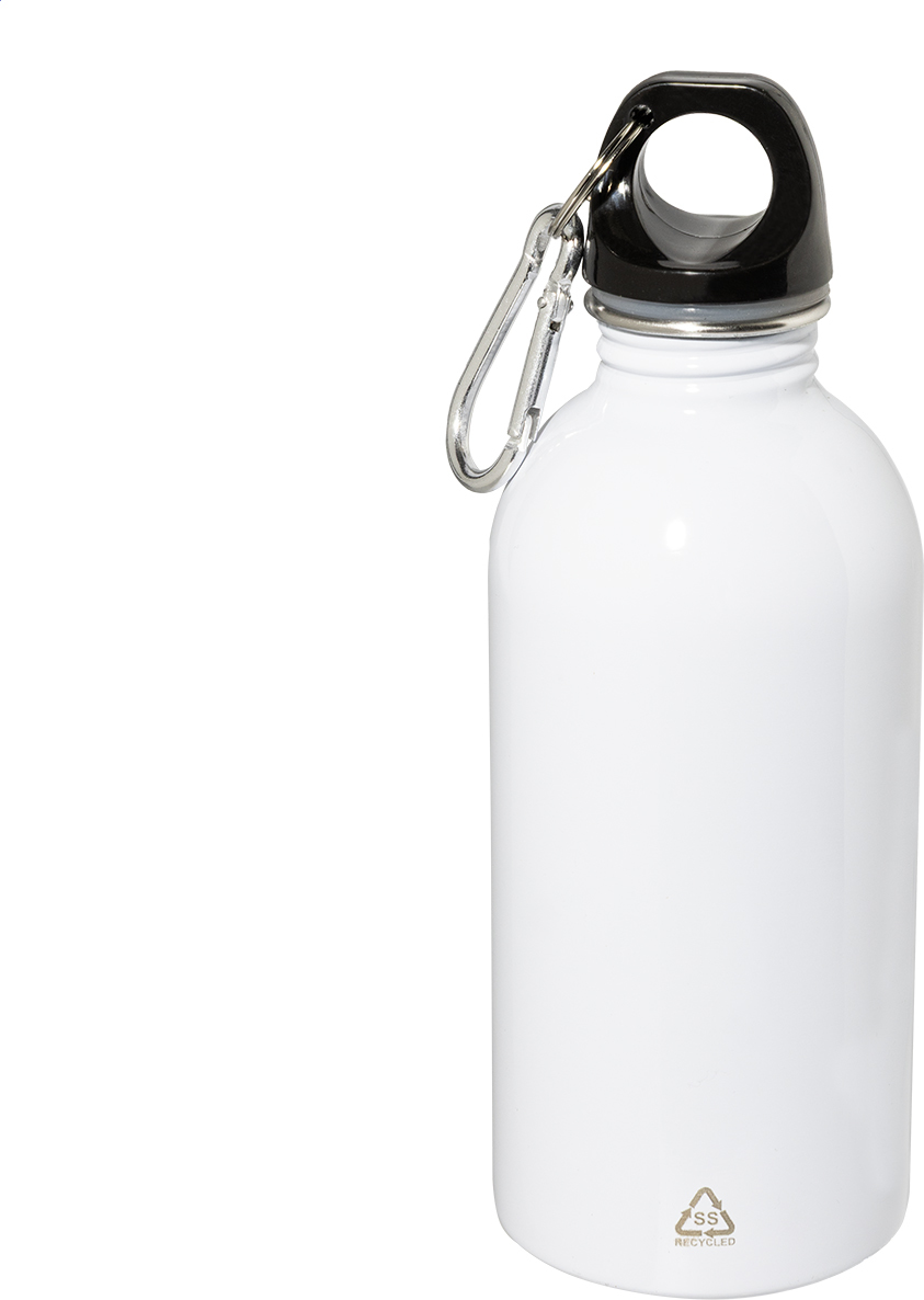 Láhev z recyklované nerezové oceli s hliníkovou karabinou, 400 ml.
