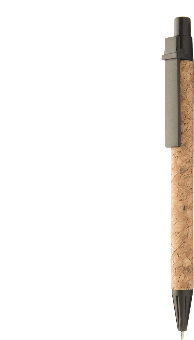 Kuličkové pero z recyklovaného papíru s korkovým povrchem a plastovými částmi, s modrou náplní.