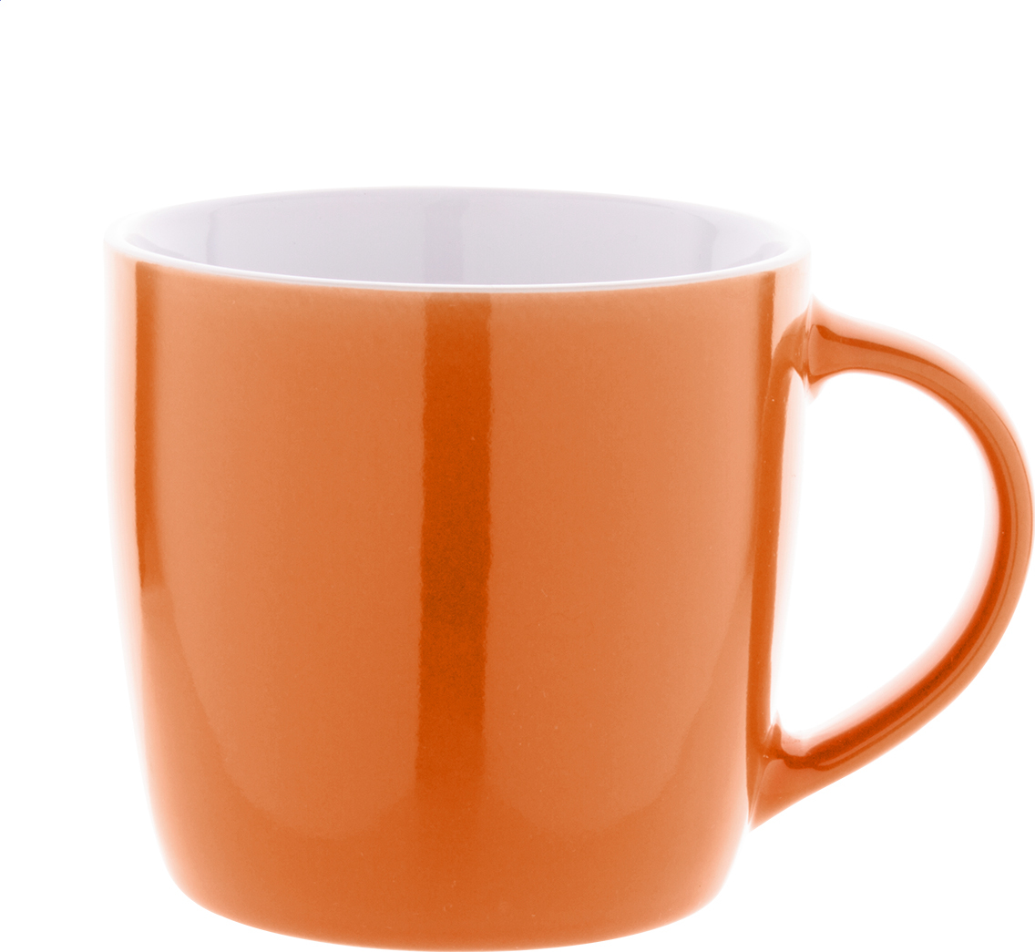 Vysoce kvalitní barevný keramický hrnek s bílým vnitřkem, 370 ml. V kraftové papírové krabici.