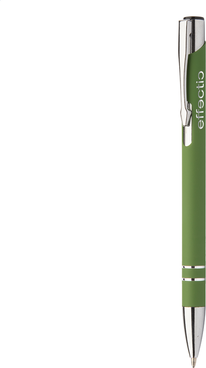 Hliníkové kuličkové pero s pogumovaným povrchem a modrou náplní. Speciální povrch pro laser stříbrného loga.
