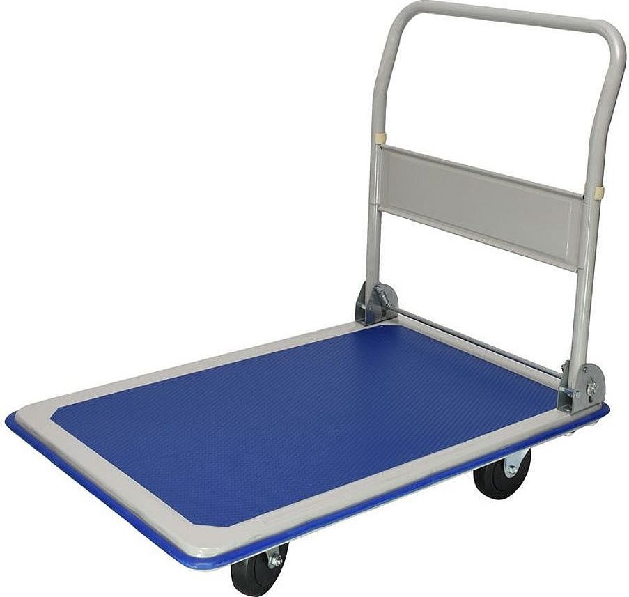 POPIS Plošinový vozík umožní převážet i rozměrnější náklad. Má široké využití ve skladech, hotelech a dalších provozech. SPECIFIKACE Nosnost: 300 kg Kolo: 4“ Nosnost: 300 kg Rozměry nakládací plošinky: Výška: 860 mm Délka: 895 mm Šířka: 610 mm Materiál: ocel