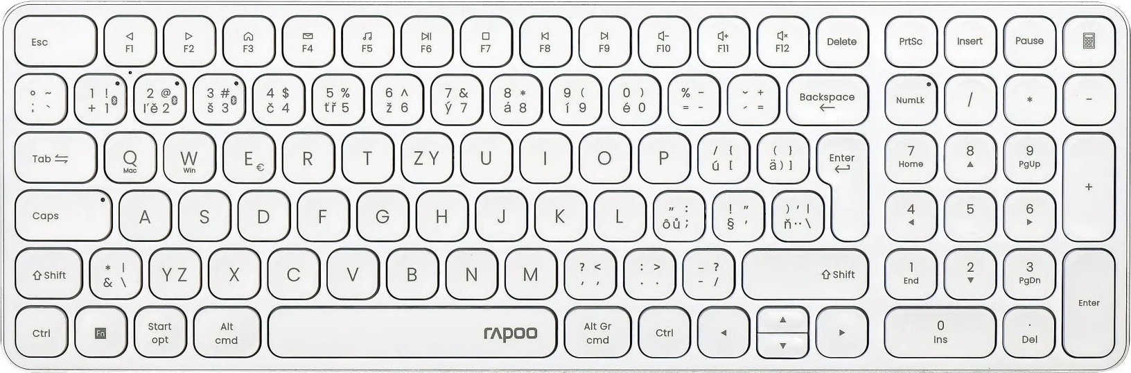 Představujeme Rapoo E9310M – ultra tenkou bezdrátovou klávesnici, která ztělesňuje perfektní kombinaci stylu a funkčnosti. Toto není jen obyčejná klávesnice; je to klíč k maximální produktivitě a pohodlí v každé práci. Svého ideálního společníka pro psaní jste právě našli!Rapoo E9310M klávesnice vás okouzlí svým ultratenkým profilem pouhých 3,9 mm a odolným krytem z eloxovaného hliníku, což z ní činí nejen designový klenot, ale i robustní nástroj pro každodenní použití.Díky možnostem připojení přes Bluetooth 4.0, Bluetooth 5.0 a 2,4 GHz si můžete klávesnici snadno propojit s více zařízeními najednou a bez problémů mezi nimi přepínat. Přechod z počítače na tablet bude s touto klávesnicí hračka.S technologií úspory energie od Rapoo si užijete až 12 měsíců práce bez nutnosti výměny baterií. To znamená méně starostí a více času na práci i zábavu.Díky klávesám plné velikosti nabízí Rapoo E9310M vysoký komfort psaní spolu s rychlým přístupem k multimediálním funkcím přes multifunkční klávesy Fn, což zvyšuje vaši efektivitu a pohodlí.Proč si vybrat Rapoo E9310M?1. Maximální přizpůsobivost: Snadno se připojíte k jakémukoliv zařízení bez nutnosti více klávesnic.2. Bezkonkurenční design a odolnost: Eloxovaný hliník a minimalistický design jsou nejen krásné na pohled, ale jsou také navrženy pro dlouhou trvanlivost.3. Úspora času a energie: Dlouhá výdrž baterie a bezdrátové připojení znamenají méně přerušení a více produktivity.4. Optimalizované pracovní prostředí: Klávesnice je navržena tak, aby zvýšila vaši efektivitu a minimalizovala únavu při psaní.5. Flexibilita a snadné ovládání: Přepínejte mezi zařízeními s lehkostí a užívejte si plynulý workflow bez ohledu na to, kde pracujete.Specifikace:CZ/SK rozložení kláves.Bezdrátové připojení ve více režimech: 2,4 GHz, Bluetooth 4.0, Bluetooth 5.0.Vzdálenost: dosah až 10 m, 360° pokrytí.Ultra tenké provedení 3,9 mm.Základna z hliníkové slitiny.99 nůžkových tlačítek.Nano USB přijímač.Úložný prostor pro přijímač Nano USB.Obsahuje 2x AAA baterie.Životnost baterií až 12 měsíců.Přepínací tlačítko Bluetooth/2,4 GHz (klávesnice).Systémové požadavkyWindows® XP/Vista/7/8/10/11, MacOS, iOS, Android, Chrome OS, USB port.Obsah balení: bezdrátová klávesnice, přijímač Nano USB, 2 alkalické baterie AAA (nainstalované).Technické parametryTyp připojeníbluetoothBaterie typAAANapájeníBateriovéBarvašedáVýška produktu119 mmŠířka produktu363 mmHloubka produktu20 mmHmotnost produktu0,31 kgŠířka krabice403 mmVýška krabice134 mmHloubka krabice29 mmHmotnost krabice s produktem0,507 kg
