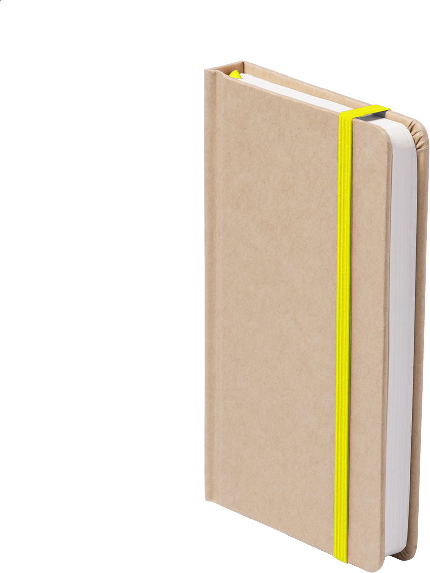 Blok s deskami potaženými recyklovaným kartonem se 100 čistými listy, barevnou záložkou a gumičkou.