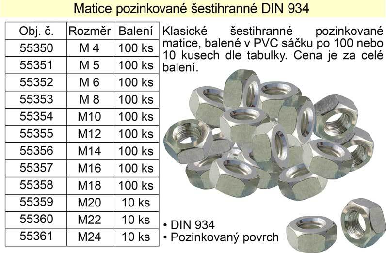 Klasická šestihranná pozinkovaná matice M22 Zn DIN 934, balení v PVC sáčku s obsahem 10 kusů. Cena je za celé balení.• M22• Zn DIN 935• Balení 10 kusů