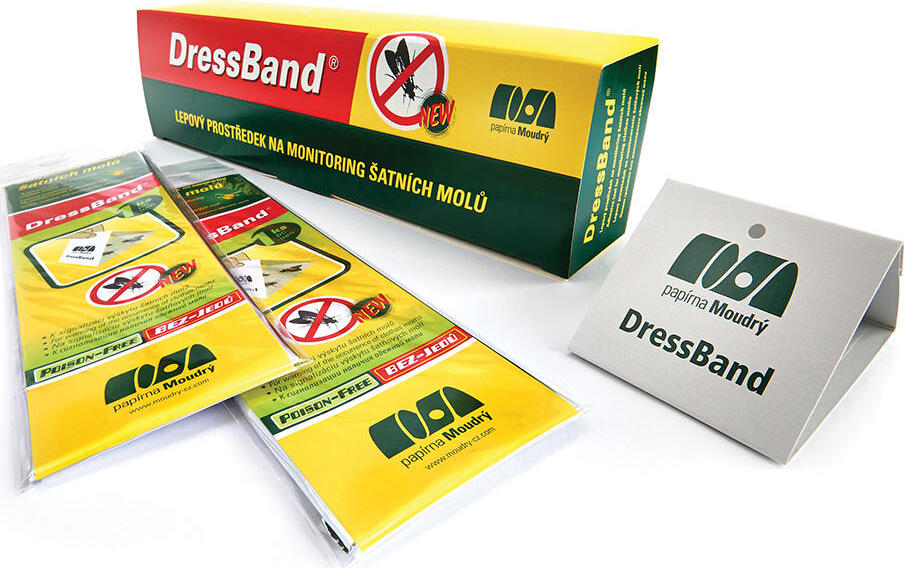 POPISJednostranně lepicí pás opatřený feromonem, který se skládá do tvaru trojúhelníku.Lapač zaručuje účinný odchyt samců šatních molů druhu Tineola bisselliella a Tinea pellionella.VLASTNOSTIJde o účinný a jednoduše použitelný lepový prostředek na monitoring výskytu šatních molů.Odchyt samečků zamezí reprodukci molů a tím i napadení oděvů, kožichů a jiných textilií larvami.Lapač lze zavěsit pomocí háčku nebo provázku nebo položit do míst předpokládaného výskytu.Lapač je malý a skladný.Lepový pás je schopen přilákat moly z širokého okruhu a jeden lapač je účinný po dobu až 3 měsíců.