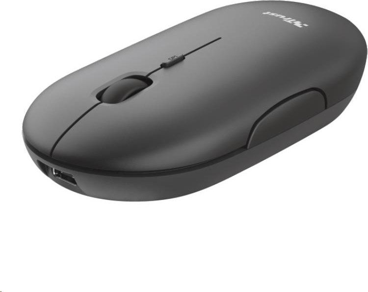 Trust Puck Rechargeable Bluetooth Wireless Mouse. Dobíjecí bezdrátová myš s minimalistickým zaobleným tvarem a tichými tlačítky. Trust Puck je navržena tak, aby byla vaším řešením pro vaše výzvy na cestách. Tato ultratenká bezdrátová myš je dostatečně malá na to, abyste si ji mohli vzít s sebou, a přesto je dostatečně pohodlná na používání. Je vybaven spoustou praktických funkcí, jako je duální bezdrátové připojení, tichá tlačítka a dobíjecí baterie. A funguje pro leváky i praváky.Díky dobíjecí baterii už nikdy nebudete muset kupovat jednorázové baterie. Když myši dochází energie, jednoduše ji připojte pomocí přiloženého kabelu USB-C a můžete vyrazit. Šetří peníze i životní prostředí.Klíčové vlastnosti*Ultratenký design; pouze 27 mm na výšku, takže se snadno vejde do tašky*Tichá tlačítka snižují nepříjemné zvuky kliknutí o 90%*Šetrné k životnímu prostředí díky dobíjecí baterii*Připojení přes Bluetooth nebo pomocí přiloženého, snadno skladovatelného USB mikro přijímače*Pro praváky i leváky díky symetrickému oboustrannému designu*Upravte rychlost pomocí tlačítka DPI (800, 1200, 1600 DPI)Technické parametry*Typ připojení: bezdrátové*Bluetooth: ano*Dosah bezdrátové sítě: 10 m*Bezdrátové protokoly: RF 2,4 GHz, Bluetooth*USB verze: 2.0*Rozsah DPI: 800 dpi - 1600 dpi*Senzorová technologie: optická*Počet tlačítek: 4Odkaz na web výrobce: https://www.trust.com/en/product/24059-puck-rechargeable-bluetooth-wireless-mouse-black