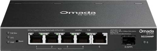Výkonný 6portový gigabitový switch z řady Omada představuje ideální řešení pro firmy i domácnosti, které chtějí zajistit spolehlivou a rychlou síťovou infrastrukturu. Nabízí celkem 5 Gigabitových LAN portů, z toho 4 s podporou PoE+ (30 W / port), a k tomu 1 Gigabitový SFP slot pro rozšíření síťových možností. Díky podpoře PoE+ lze napájet zařízení, jako jsou IP kamery, bezdrátové access pointy či IP telefony, přímo prostřednictvím síťového kabelu, což zjednodušuje instalaci a snižuje potřebu další kabeláže. Celkový PoE budget 63 W přitom umožňuje poskytnout až 30 W na každý port. Pokročilá správa a zabezpečeníCentralizovaná správa prostřednictvím cloudu přes webové rozhraní nebo aplikaci Omada přináší komfortní a flexibilní dohled nad celou sítí. Samostatná správa je možná také přes web, CLI, SNMP nebo RMON, což zajišťuje široké možnosti konfigurace podle individuálních potřeb. Pro efektivní organizaci a zabezpečení provozu jsou k dispozici pokročilé funkce, jako je VLAN, ACL, QoS a IGMP Snooping. Efektivní směrování a univerzální využitíZařízení disponuje také funkcí statického směrování, která napomáhá efektivnějšímu směrování interního provozu a odlehčuje síťové infrastruktuře. Switch podporuje připojení jak napájených PoE zařízení, tak i klasických síťových prvků, jako jsou PC či tiskárny. Díky tomu je skvělou volbou pro různé scénáře využití – od rozšíření Wi-Fi pokrytí přes dohledový systém až po kvalitní řešení pro konferenční hovory. Odolná konstrukce a spolehlivý výkonOdolné kovové šasi umožňuje instalaci na stůl i na stěnu, přičemž pasivní chlazení bez ventilátoru zajišťuje tichý chod. Switch dosahuje přepínací kapacity 12 Gbps a rychlosti předávání paketů 8,9 Mpps, přičemž podporuje jumbo rámce až do 9000 bajtů. Tabulka s kapacitou 8000 MAC adres zaručuje stabilní a spolehlivý provoz i v hustě osídleném síťovém prostředí. Klíčové vlastnosti 5 gigabitových RJ45 portů (4× PoE+) a 1 gigabitový SFP slot Celkový PoE rozpočet 63 W, až 30 W na port Centralizovaná cloudová správa a podpora web, CLI, SNMP, RMON Pokročilé funkce: VLAN, ACL, QoS, IGMP Snooping Statické směrování pro efektivní interní provoz Kovové šasi s možností instalace na stůl i na stěnu Přepínací kapacita 12 Gbps, rychlost přeposílání 8,9 Mpps Podpora jumbo rámců až 9000 bajtů, tabulka 8000 MAC adres Obsah balení Zařízení Napájecí adaptér Napájecí kabel Sada pro montáž do racku Gumové nožičky