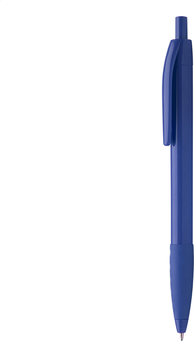 Plastové kuličkové pero se stejně barevným gumovým úchopem, s modrou náplní.