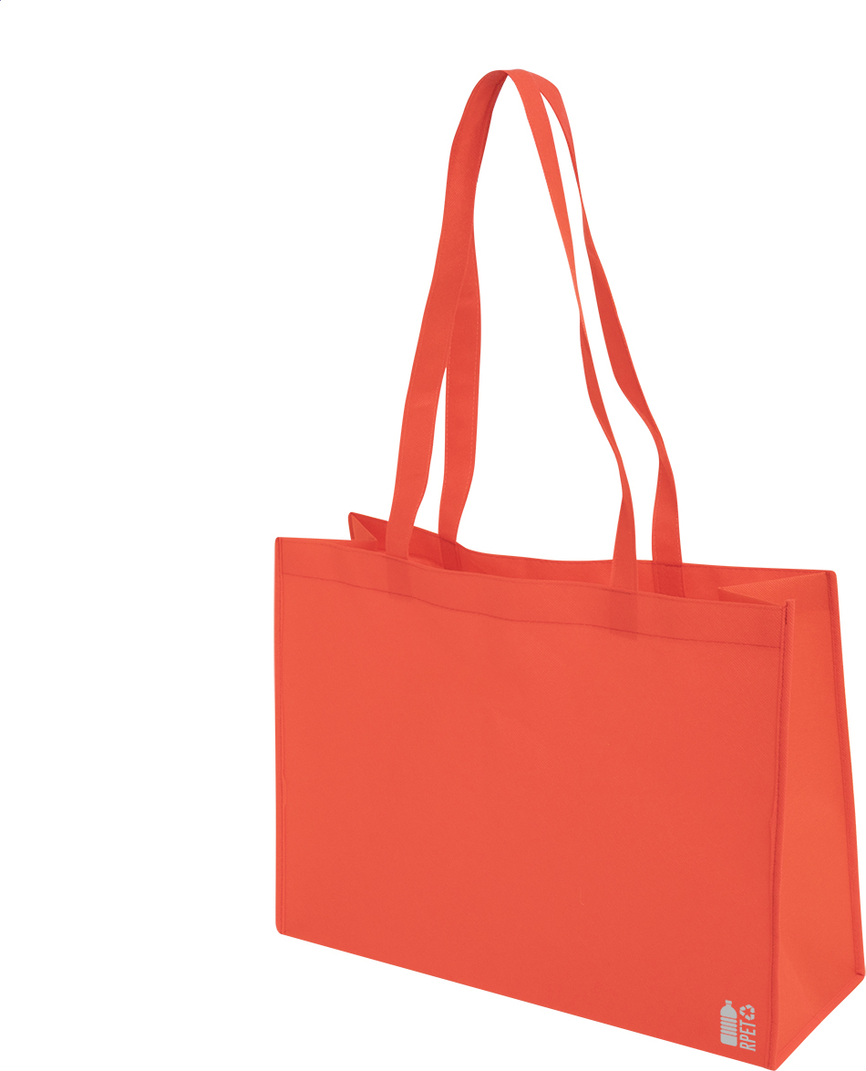 Nákupní taška z netkané textilie RPET s klínem a dlouhými uchy, 80 g/m². S výrazným logem RPET.