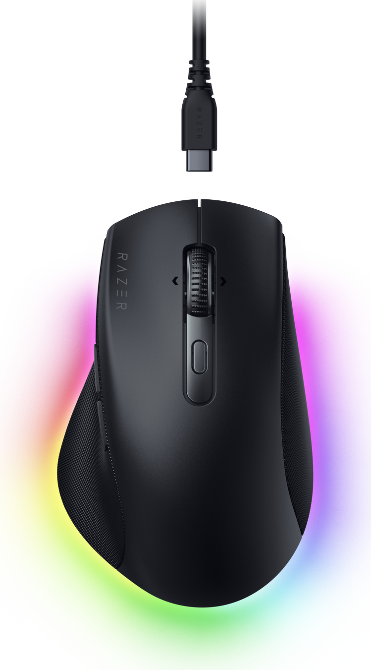S bezdrátovou ergonomickou myší snadno přepínejte z práce do hry. Zvyšte produktivitu pomocí zkratek s umělou inteligencí a užijte si vysoce přesné hraní s perfektním all-in-one nástrojem pro vaši pracovní stanici i herní konzoli. Užijte si dlouhé hodiny hraní a práce bez námahy. Snadno přecházejte mezi aktivitami díky dokonale tvarovanému ergonomickému tvaru s širší opěrkou pro palec pro lepší držení zápěstí. Scrollujte text, tvořte koncepty e-mailů a další jediným kliknutím. Odemkněte si výkonné zkratky pomocí Razer Synapse 4, uložte si je do myši a okamžitě zefektivnite svůj pracovní postup pro nástroje s umělou inteligencí. Odemkněte reaktivní RGB osvětlení s Chroma Workshop. Přizpůsobte si 16,8 milionu barev na 14 zón podsvícení a užijte si vylepšené ponoření do hry s více než 300 podporovanými hrami.Provedení: Pro pravákyPřipojení: Razer HyperSpeed Wireless (2,4 GHz), Bluetooth – až 3 hostitelé, kabelové USB-CVýdrž baterie: Až 3,5 měsíceRGB podsvícení: 14zónové podsvíceníSenzor: Optický senzor Razer Focus ProMaximální citlivost (DPI): 30000Maximální rychlost (IPS): 550Maximální zrychlení (G): 40Programovatelná tlačítka: 9Typ spínače: Mechanický spínačŽivotnost spínače: 60 milionů kliknutíProfily integrované paměti: 1Nožičky myši: 100% PTFEKabel: 1,2m kabel USB-A na USB-C pro nabíjení a kabelové použitíNaklápěcí kolečko: Duální režim s naklápěnímPřibližná velikostDélka: 126,0 mmŠířka: 80,0 mmVýška: 46,0 mmPřibližná hmotnost: 110 g
