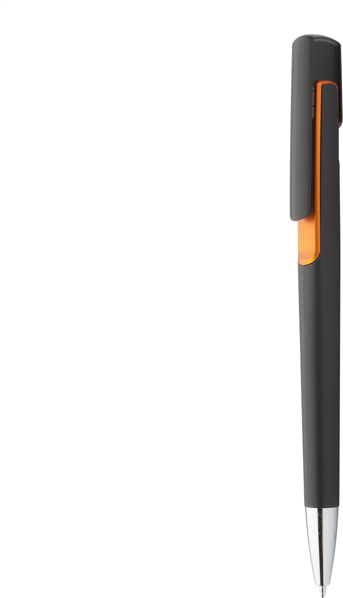 Plastové kuličkové pero s barevným zdobením a chromovaným hrotem. S modrou náplní.