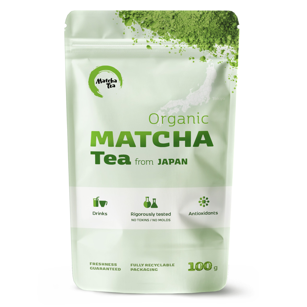 A Japan Matcha 100% Bio zelený čaj matcha z Japonska — 100g uzavíratelný doypack Bio certifikace 200+ testů kvality Japonsko Recyklovatelný BOPP obal A Japan je univerzální matcha v praktickém 100g doypacku — ideální pro šejkr, matcha latté, vaření i pečení. Zipový uzávěr umožňuje odměřit přesné množství a zachovat čerstvost. Balení vystačí na cca 50 porcí. Doypack je vyroben z plně recyklovatelného materiálu BOPP. Doporučeno pro A Japan je univerzální matcha — hodí se pro šejkr, vaření a pečení i míchané koktejly. ✔ Moderní příprava → ✔ Vaření a pečení → ✔ Koktejly Chuťový profil A Japan má výrazný, zemitý charakter s dominantní travnatostí. Její robustnější chuť ji činí ideální pro dochucování — proto skvěle funguje v koktejlech, smoothie, při vaření i pečení. Umami 5.5/10 Sladkost 5/10 Travnatost 8.5/10 Hořkost 4.5/10 Krémovost 6/10 Intenzita chuti A Japan je přístupná, zemitá matcha — ideální pro každodenní přípravu v šejkru i pro vaření a pečení. A Japan → Imperial Premium (intenzivní) ♻ Plně recyklovatelný obal — materiál BOPP Doypack je vyroben z biaxiálně orientovaného polypropylenu (BOPP) — lehkého, odolného a plně recyklovatelného materiálu. Po spotřebování ho odevzdejte do sběru plastů. Pro zdravý životní styl ✔ Čilost* Kofein pomáhá zvýšit čilost a bystrost. ✔ Soustředění* Kofein pomáhá zlepšit soustředění. ✔ Antioxidanty* Přispívá k ochraně buněk před oxidativním stresem. ✔ Imunita* Podporuje přirozenou obranyschopnost organismu. * Zdravotní tvrzení dle Nařízení (ES) č. 1924/2006. Doplněk stravy není náhradou pestré a vyvážené stravy a zdravého životního stylu. Návod na přípravu ✓ Moderní příprava (Šejkr) Nejrychlejší způsob přípravy — ideální na cesty Do šejkru nasypte 2 g matcha (1 čajová lžička), přilejte 200–300 ml studené nebo horké vody do 70 °C a protřepejte. Přidat můžete ovocnou šťávu, sirup, med či zázvor. Tip: Díky uzavíratelnému doypacku snadno odměříte přesné množství. Jedna čajová lžička ≈ 2 g. Více receptů na matchatea.cz/recepty. ✓ Matcha latté Krémový nápoj s mlékem 2 g matcha rozmíchejte v malém množství vody (do 70 °C), doplňte napěněným mlékem nebo rostlinnou alternativou. Sladce můžete dochutit medem nebo javorovým sirupem. Tip: Pro studenou variantu přidejte led a protřepejte v šejkru. Nejlepší výsledek dává ovesné nebo mandlové mléko. ✓ Vaření a pečení Matcha do sladkých i slaných receptů Tipy na pečení Matcha dort, sušenky, muffiny, palačinky, zmrzlina Na jeden recept stačí 2–6 g matcha (1–3 čajové lžičky) Matcha nejprve prosejte a vmíchejte do mokrých ingrediencí Tipy na vaření Matcha omáčky, dresinky, marinády Přidejte matcha až na konci vaření, abyste zachovali barvu a chuť Tip: A Japan má výraznou chuť, díky které krásně pronikne i do sladkých receptů. 100g balení je ideální pro pravidelné pečení. Více inspirace na matchatea.cz/recepty. Video návody Jak vzniká náš Matcha Tea? Příprava Matcha Tea Původ a pěstování ▼ Japonsko A Japan pochází z Japonska — země s nejdelší tradicí pěstování matcha na světě. Čajovníky jsou před sklizní zastíněny po dobu 20–30 dní, což zvyšuje obsah chlorofylu a aminokyselin. Po sklizni se listy šetrně suší na tencha a následně melou na jemný prášek pomocí granitových mlýnků. ☘ Zastínění 20–30 dní ☘ Sklizeň Japonsko ☘ Sušení Šetrně na tencha ☘ Mletí Granitové mlýnky Certifikace a testování ▼ Kvalita je pro nás priorita číslo jedna. Každá šarže prochází nezávislým laboratorním testováním v akreditovaných laboratořích — na pesticidy, těžké kovy, mikrobiologii, aflatoxiny i aromatické uhlovodíky. Všechny výsledky testů jsou veřejně dostupné. 200+ testů celkem 2013 bio certifikace od 96,5 % úspěšnost testů Bio Matcha Tea A Japan je certifikována známkou Bio, kterou Matcha Tea úspěšně obhajuje každý rok od roku 2013. Disponujeme také Certifikátem o zdravotní nezávadnosti produktu vydaným Státním zdravotním ústavem. Složení ▼ Složení: 100% jemně mletý bio zelený čaj matcha (Camellia sinensis) Alergeny: Žádné Čisté množství: 100 g (cca 50 porcí po 2 g) Země původu: Japonsko Výrobce/balírna: Kyosun s.r.o., Česká republika Obal: Uzavíratelný doypack z plně recyklovatelného BOPP materiálu EAN: 8594169250656 Doporučená denní dávka: Dospělí 4–6 g, těhotné, kojící a děti cca 2 g Skladování ▼ ✔ Trvanlivost 24 měsíců od data výroby (viz obal) ✔ Skladování Chladné, suché, tmavé místo. Mimo dosah přímého slunce. ✔ Po otevření Spotřebovat do 4 týdnů. Doypack vždy důkladně uzavřete zipem. Bio Matcha Tea nedoporučujeme pít na lačný žaludek. Jedná se o velmi silný čaj a na prázdný žaludek může způsobit nevolnost.