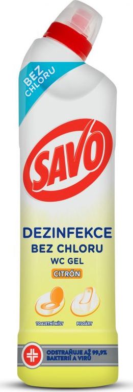 Savo WC gel, tekutý čistič - přípravek pro čistou toaletu s dezinfekčním účinkem. Odstraní bakterie a zbaví toaletu nepříjemných pachů. Tekutý WC čistič o objemu 750 ml v mimořádné kvalitě s dezinfekčními účinky, spolehlivě likviduje bakterie a viry. Přípravek je zahuštěný, jeho stékavost je snížena, odstraňuje usazeniny i úporné pachy. Má bělicí účinky.