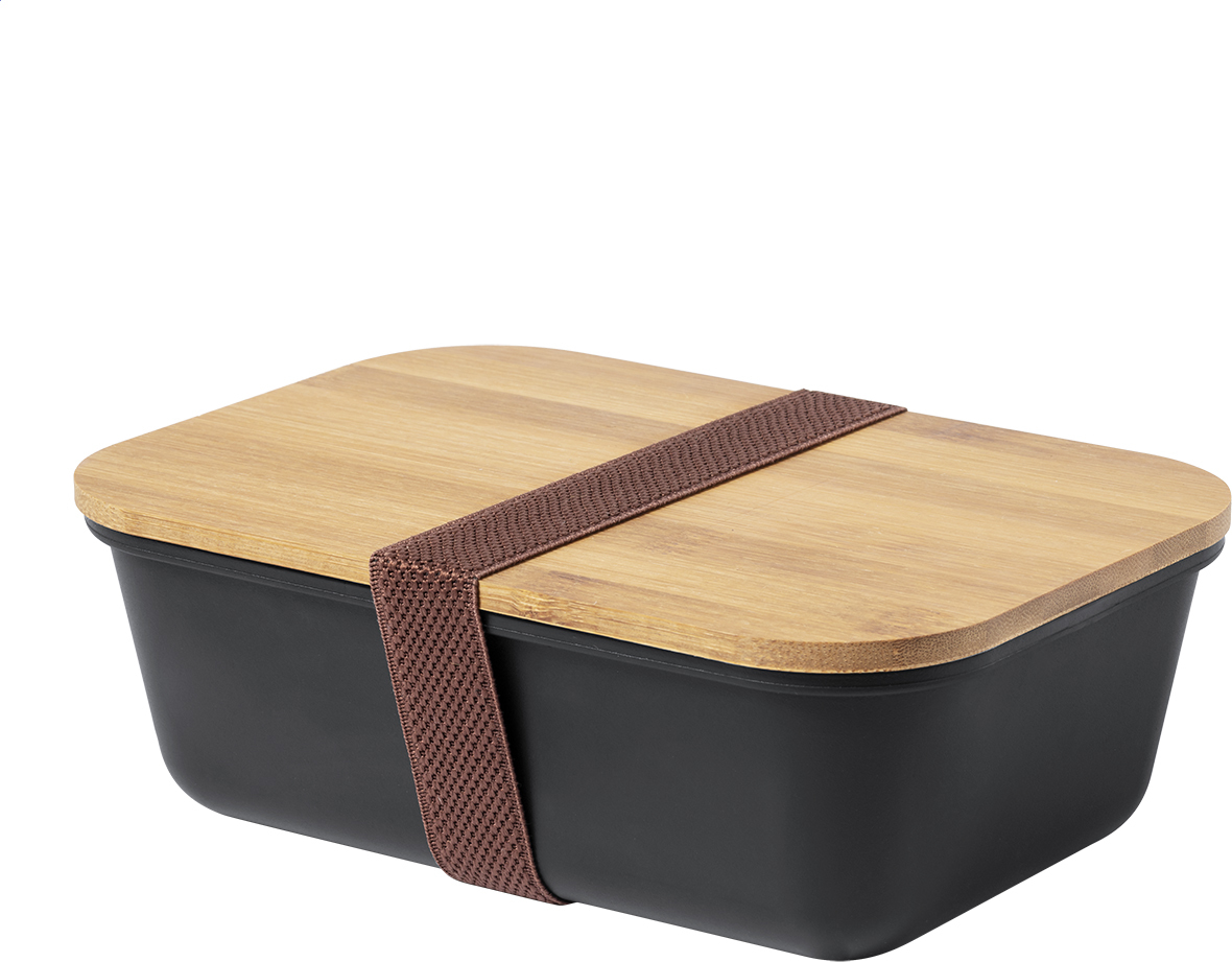 Box na jídlo z PP plastu s bambusovým víkem a elastickým páskem. 1000 ml.