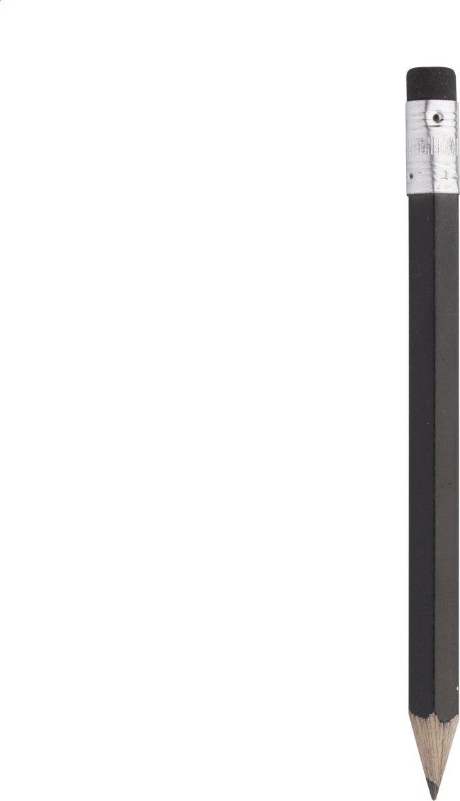 Dřevěná, malá tužka s gumou na konci, ořezaná.